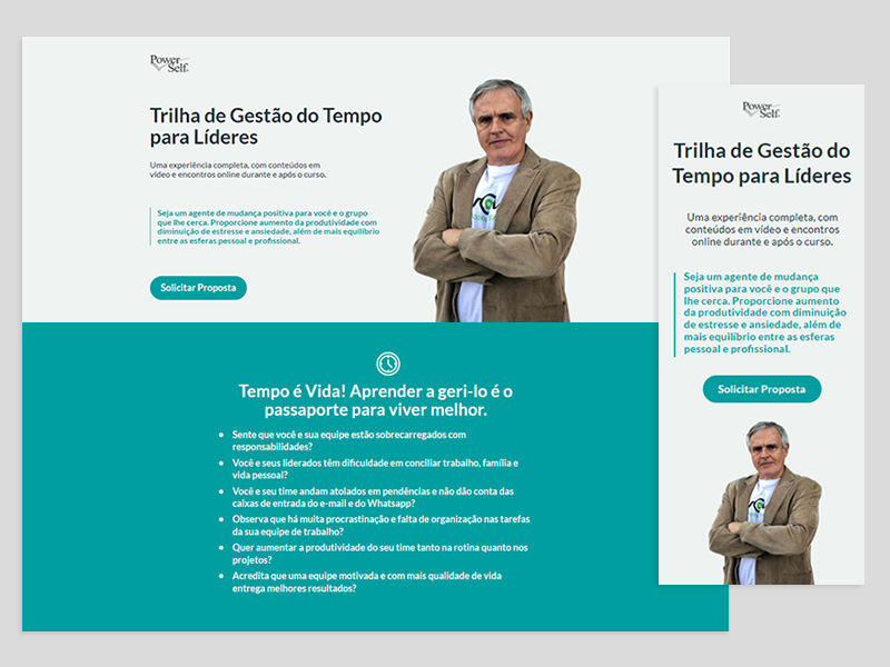 The Landing Page features a responsive and appealing design, showcasing the advantages of Time Management Mentoring for leaders, along with comprehensive information regarding the course structure, the programme, and video testimonials from former students.The Landing Page is integrated with e-commerce, providing the functionality to request a custom proposal tailored to each leader's specific requirements.