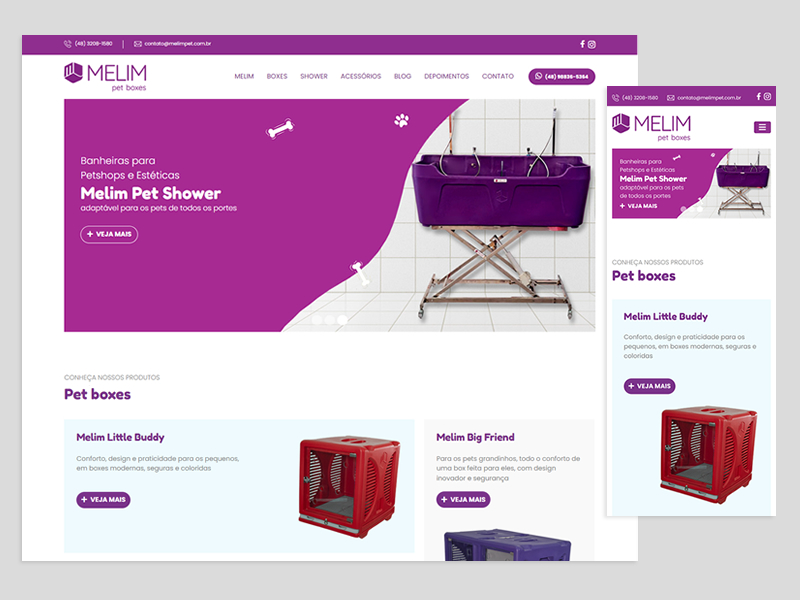 Established in 2021, Melim Pet Boxes rapidly secured a prominent position in the pet box and bathtub sector, becoming a key player in the market for pet shops, clinics and veterinary hotels. The website presents the company's product catalogue and the colours available, with photos and detailed information, as well as a blog area with tips, news, trends and updates for professionals in the sector and pet owners.