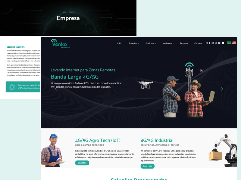 The Venko Networks website was developed to reflect the global and innovative positioning of the company, which specialises in connectivity and is present in more than 10 countries. With offices in Brazil and the USA, Venko required the website to be developed in English and Portuguese, covering its vast range of solutions, divided into services and products, with multiple verticals.